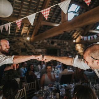 The Mathers were welcomed upstairs in the Lovable Old Barn for a feast of speeches, Mediterranean style deliciousness and partying, hosted by a 'wedding singer'. I won't lie I was dubious about the wedding singer and expected a dodgy Adam Sandler look alike with an even dodgier mullet to appear. But my god he was epic. Before the starters we were dancing on chairs and doing the conga around the barn. All of the stress of the last few months was dissolved in that one moment of seeing the barn bouncing so full of life, love and utter happiness.